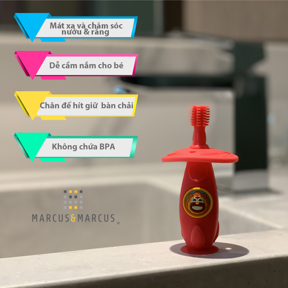 Bàn chải tập đánh răng và mát xa nướu silicon 360 cho bé Marcus & Marcus, từ 12 tháng