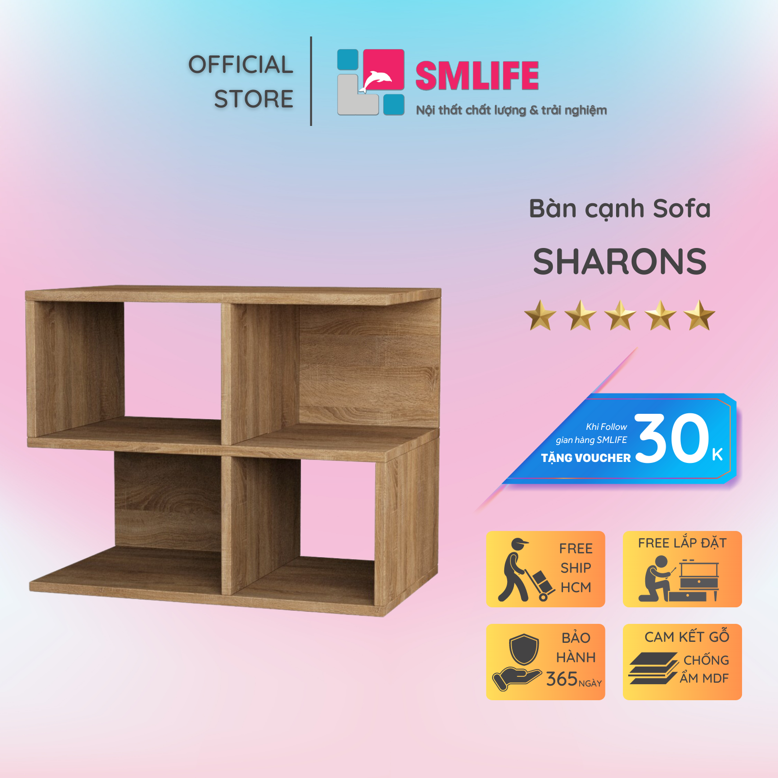 Bàn gỗ cạnh Sofa hiện đại SMLIFE Sharon là một sự bổ sung hoàn hảo cho phòng khách của bạn. Kệ cạnh bàn Sharon được thiết kế cân xứng với 2 tầng kệ rộng rãi để trưng bày tạp chí hay các vật dụng trang trí độc đáo. Sản phẩm phù hợp cho những căn hộ diện tích nhỏ. Sử dụng vật liệu ván ép công nghiệp MDF chống ẩm phủ Melamine cao cấp giúp kệ gỗ cạnh Sofa SMLIFE có độ bền cao, chống trầy và chống ẩm rất tốt. Bạn có thể tự lắp đặt sản phẩm dễ dàng với các phụ kiện và hướng dẫn đi kèm.