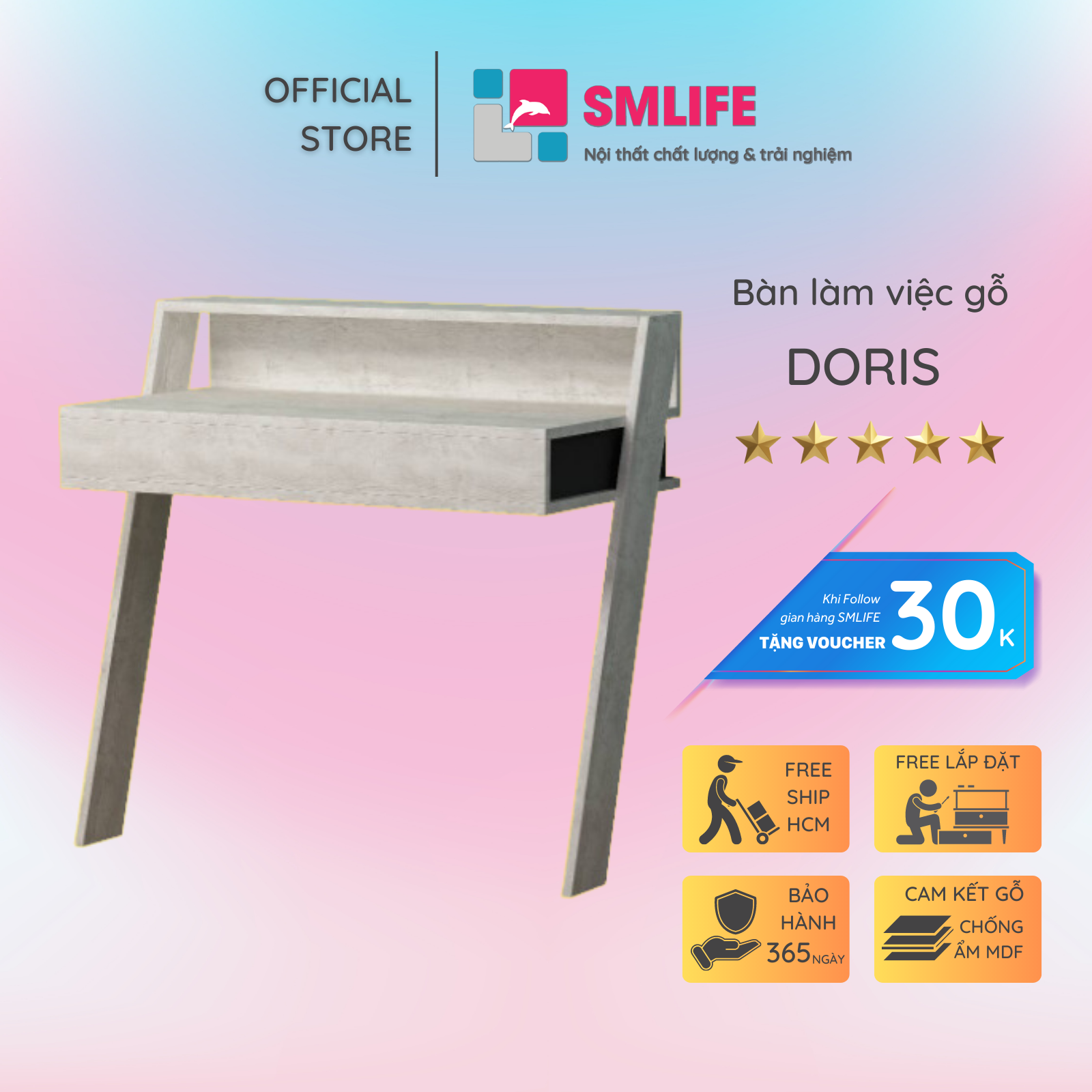 Mang đậm phong cách nội thất đơn giản, bàn làm việc gỗ Doris là một sự bổ sung hoàn hảo cho phòng làm việc, phòng đọc sách của bạn. Bàn làm việc Doris được thiết kế cách điệu với chiếc chân xéo và hộc kệ trên mặt bàn độc đáo mang đến nhiều không gian để tổ chức sách vở, đồ trang trí … Sản phẩm là một giải pháp phù hợp cho những văn phòng hoặc căn hộ diện tích nhỏ. Sử dụng vật liệu ván ép công nghiệp MDF chống ẩm phủ Melamine cao cấp giúp bàn làm việc SMLIFE có độ bền cao, chống trầy và chống ẩm rất tốt. Bạn có thể tự lắp đặt sản phẩm dễ dàng với các phụ kiện và hướng dẫn đi kèm.Giá sản phẩm trên Tiki đã bao gồm thuế theo luật hiện hành. Bên cạnh đó, tuỳ vào loại sản phẩm, hình thức và địa chỉ giao hàng mà có thể phát sinh thêm chi phí khác như phí vận chuyển, phụ phí hàng cồng kềnh, thuế nhập khẩu (đối với đơn hàng giao từ nước ngoài có giá trị trên 1 triệu đồng).....