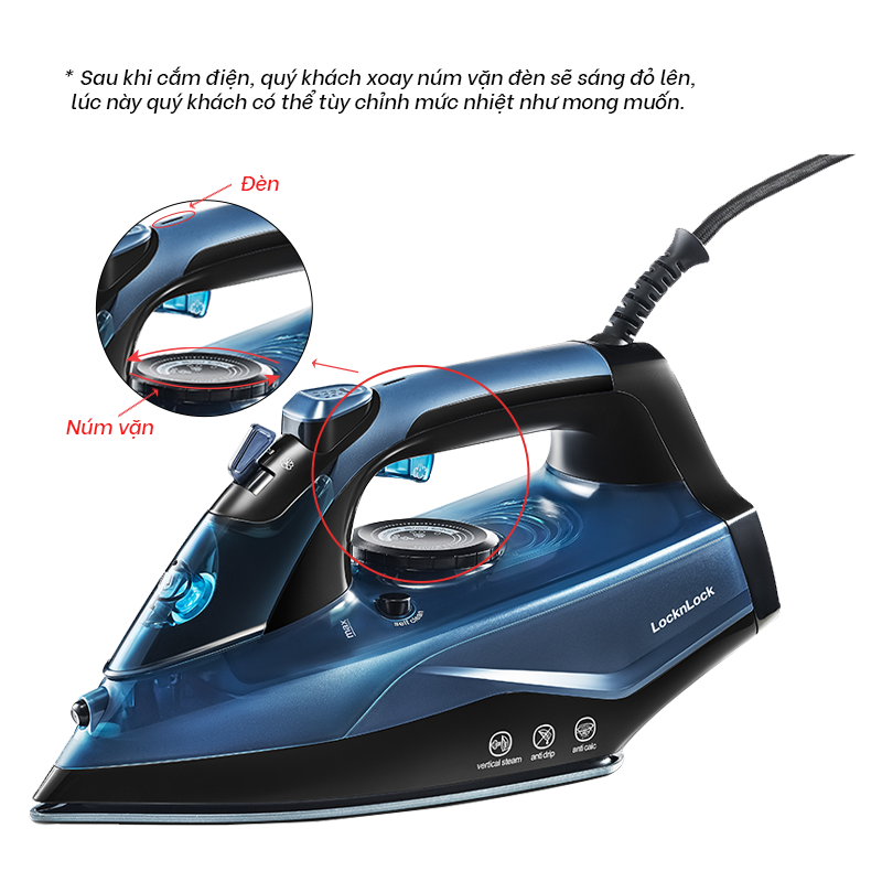 Bàn ủi hơi nước LocknLock ENI362BLU - Hàng chính hãng, tăng cường hơi nước, tự làm sạch, chống nhỏ giọt - JoyMall