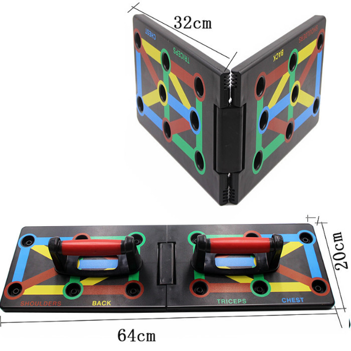 Thông số kỹ thuật Bảng dụng cụ tập hít đất , tập chống đẩy theo màu sắc, mỗi màu sắc sẽ tương ứng với bài tập khác nhau tương ứng với nhóm cơ khác nhau, thiết kế từ nhựa ABS an toàn cho người dùng - Hàng Chính Hãng