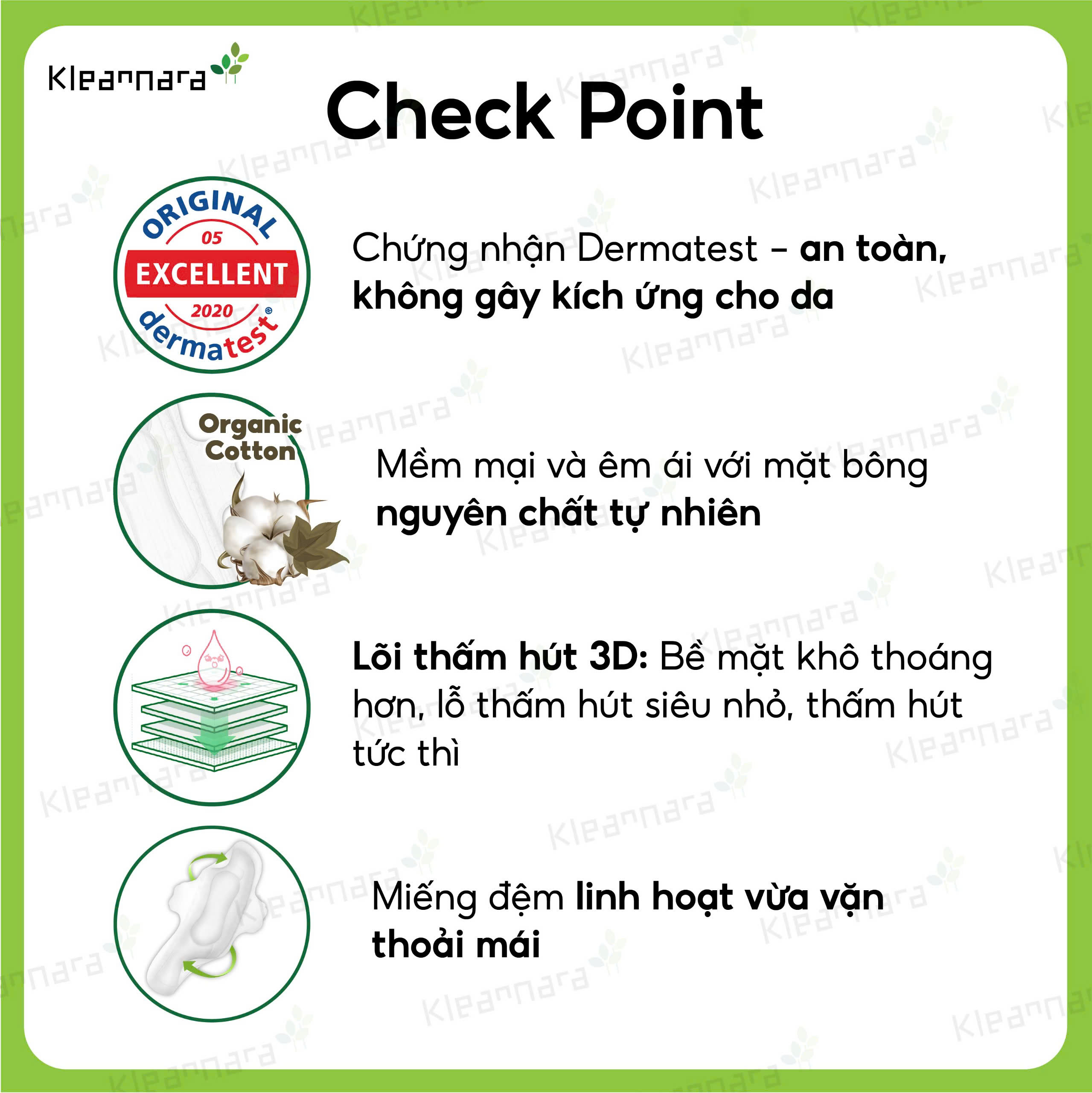 Thông số kỹ thuật BĂNG VỆ SINH KLEANNARA ZERO OVERNIGHT BAN ĐÊM (33CM) - 12 MIẾNG