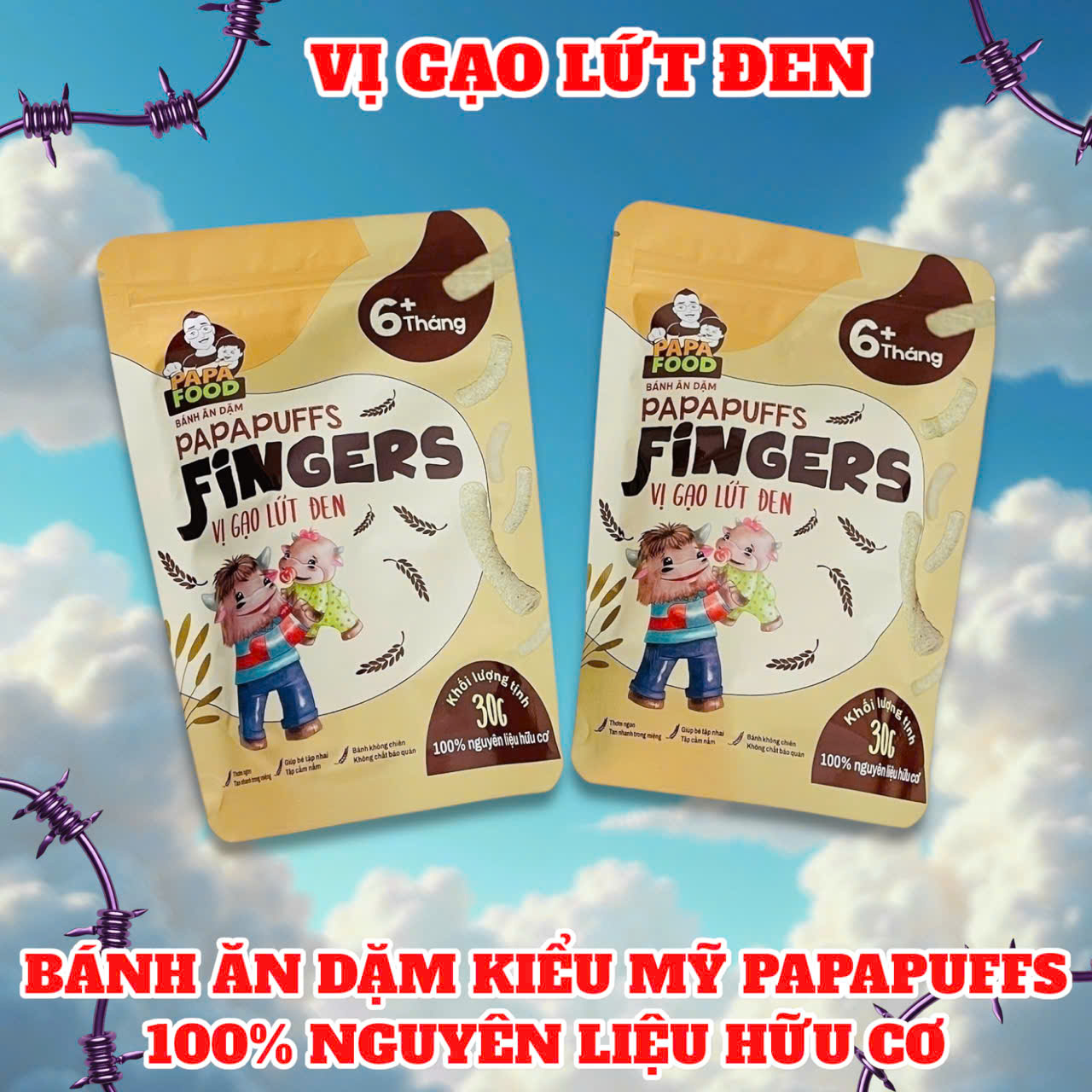1. Tên sản phẩm: Bánh ăn dặm PAPAPUFFS FINGERS - 100% Nguyên Liệu Hữu cơ