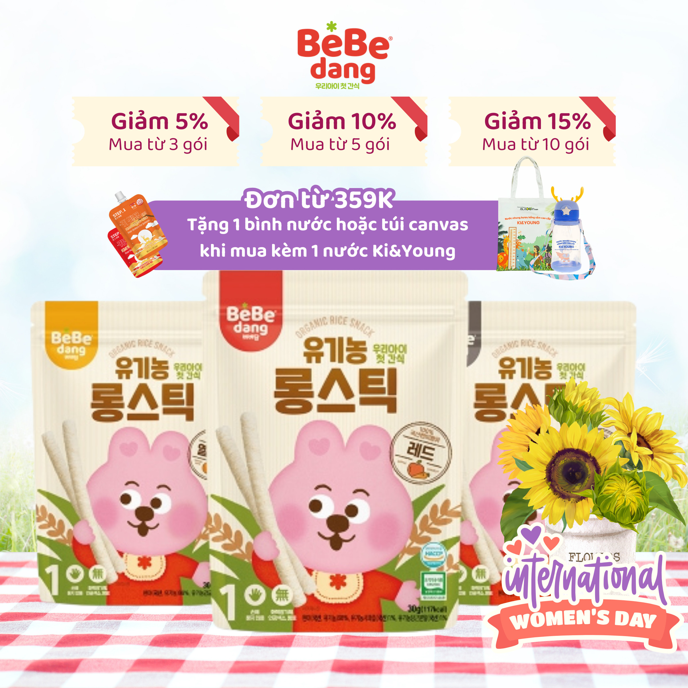 Bánh gạo hữu cơ Bebedang que dài sử dụng nguồn nguyên liệu hoàn toàn hữu cơ có xuất xứ Hàn Quốc, mang đến cho bé món ăn dặm đầu tiên không chỉ an toàn, ngon miệng mà còn cung cấp một số vitamin và dưỡng chất cần thiết để bé có một khởi đầu thật thuận lợi và khỏe mạnh khi bước vào giai đoạn ăn dặm nhiều bỡ ngỡ nhưng cũng tràn ngập niềm vui.
