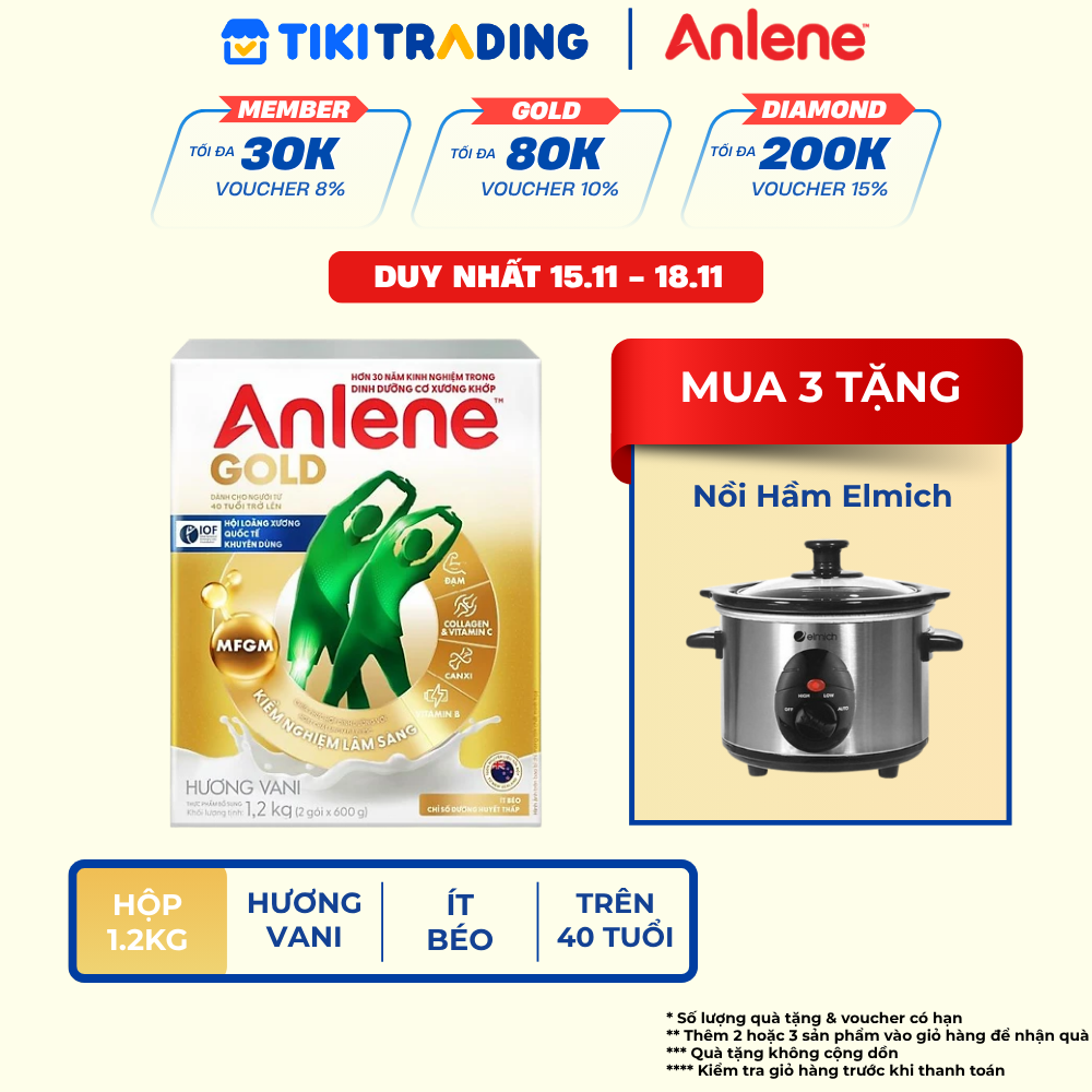 Thông số kỹ thuật Bao bì mới - Sữa Bột Anlene Gold Hương Vanilla (Hộp giấy 1200g)