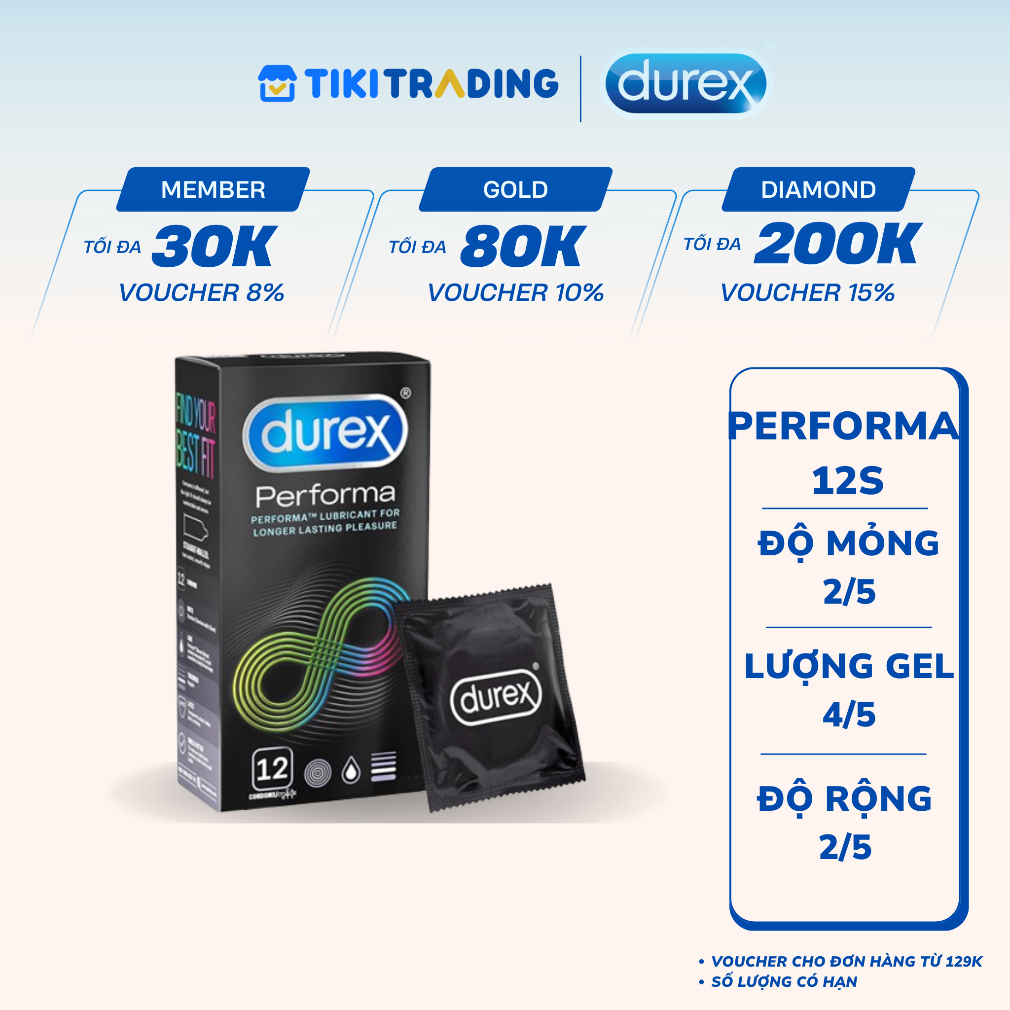 Thông số kỹ thuật Bao cao su Durex Performa 12 bao