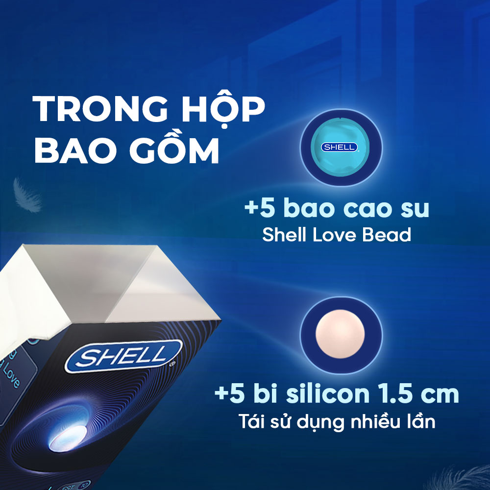 ✪ Thông tin: Bao cao su Shell Love Bead - Gân nổi, kéo dài thời gian, bi tăng 1.5cm - Đây là dòng bao thế hệ mới của thương hiệu Shell đình đám đến từ Hàn Quốc. Điểm nhấn là đi kèm bi silicon tăng kích thước 1.5cm. Bên cạnh đó cũng không thể bỏ qua thiết kế trang bị vô số gai nổi dày đặc cùng gân sóng ở phần đầu. Chị em phụ nữ sẽ phải chết mê, chết mệt với cảm giác kích thích đầy ma lực. Sản phẩm còn được bổ sung tinh chất kéo dài thời gian, giúp các quý ông sung sức nhiều giờ liền.