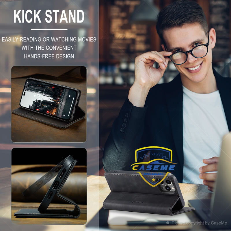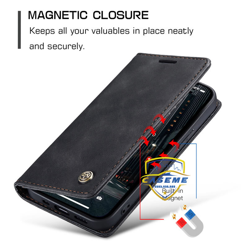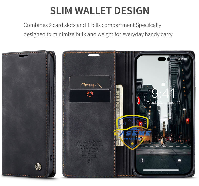 Bao da bò thật dạng ví chính hãng Caseme dành cho iPhone 14 Pro Max 2 trong 1 này !