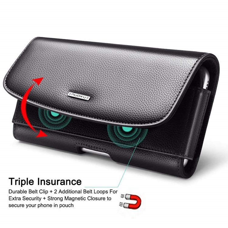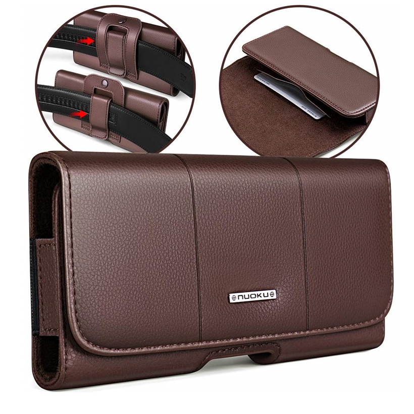 Case bao da đeo nịt da thật cho iPhone 11 12 13 14 Pro Max / 14 Plus / Note 20 / S22 / S23 ultra và các dòng máy từ 6.7 inch trở xuống hiệu Nuoku Elegant and Royal phiên bản đeo thắt lưng - chất liệu da thật cao cấp, có ngăn đựng thẻ, nắp gập hít nam châm