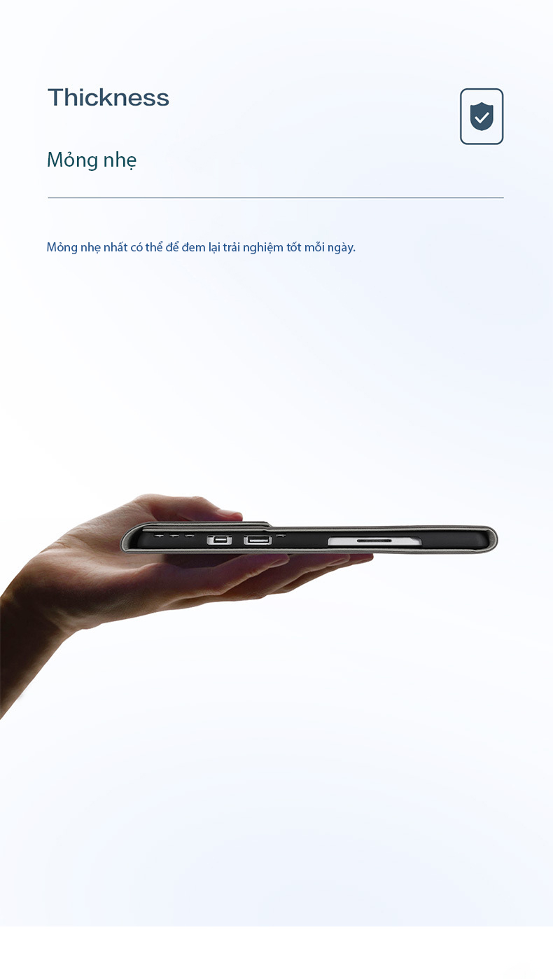 Ngoài ra bao da còn có quai cài giữ bút tiện dụng khi sử dụng, quai cài giữ nắp gập để chắc chắn hơn khi bạn mang máy đi xa hay bỏ vào cốp xe, túi xá