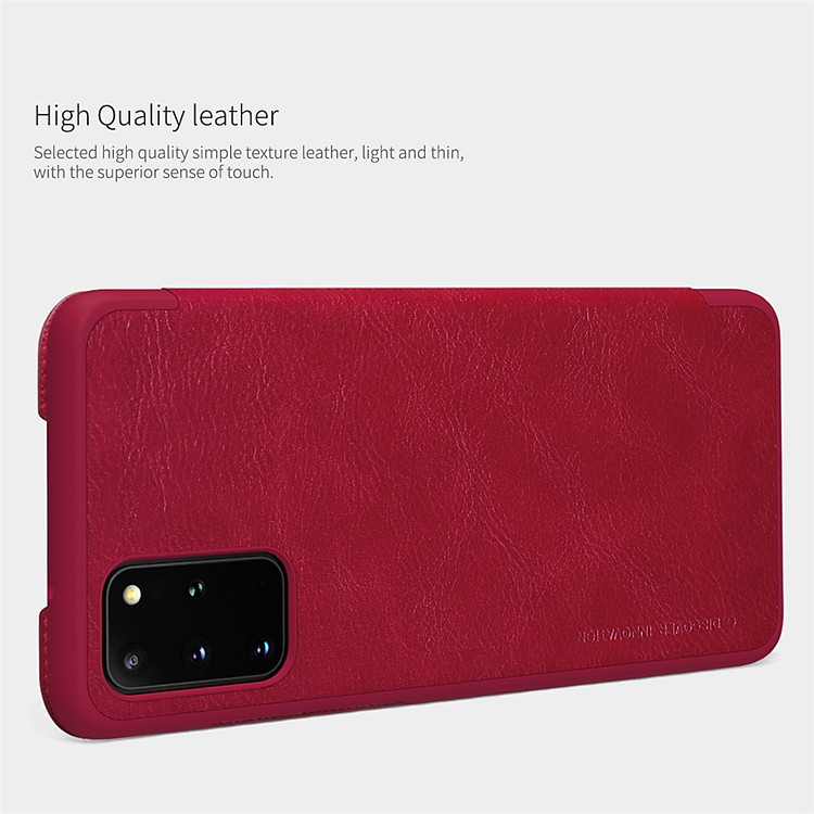 - Bao da Samsung Galaxy S20 Plus Nillkin Qin được làm từ da cao cấp PU vừa có độ bóng vừa phải, có các đường vân sần cầm cực kì bám tay, chất liệu da mềm mại rất sang trọng giúp bảo vệ máy tốt hơn.