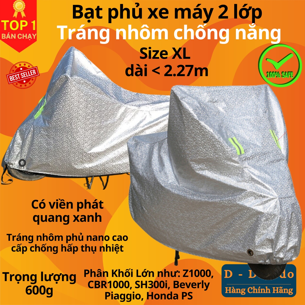 Xe máy là phương tiện phổ biến và thông dụng của người Việt Nam trên mọi nẻo đường; tuy nhiên đậu xe ngoài trời đặc biệt trong thời tiết nắng nóng sẽ gây hại cho xe máy rất nhiều, có thể làm hỏng lớp sơn, nóng yên xe, hoặc gây nổ lốp, Thấu hiều điều này, nay D Danido chúng tôi cung cấp và phân phối ra thị trường Bạt Trùm Xe Máy Tráng Bạc Che Mưa Nắng Thời Tiết Khắc Nghiệt Loại Lớn Cho Dòng Xe Tay Ga - Xe Số Thông Dụng để đáp ứng phù hợp với đại đa số các dòng xe trên thị trường hiện giờ!