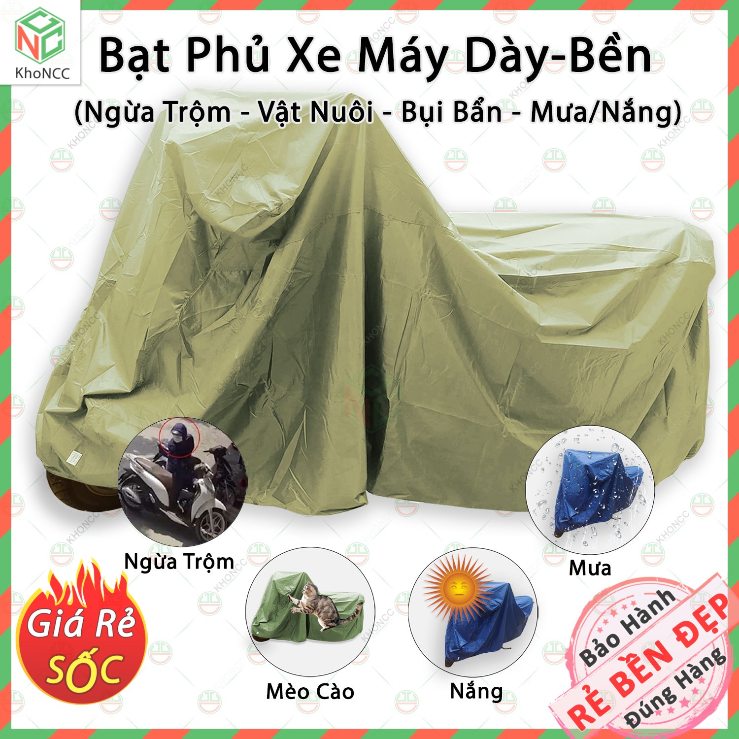 Thông số kỹ thuật (Dày Bền) Bạt Phủ Áo Trùm Xe Máy Vải Dù Cỡ 2 - Hàng Chính Hãng KhoNCC - Che Mưa Nắng Thời Tiết Khắc Nghiệt Loại Lớn Cho Dòng Xe Tay Ga - Xe Số Thông Dụng - KhoNCC-BPXVD (Nhiều Màu)