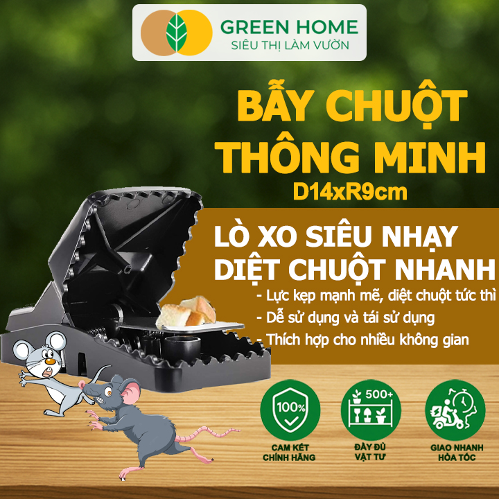Thông số kỹ thuật Bẫy Chuột Thông Minh Greenhome, D14xr9cm, Lò Xo Độ Nhạy Cao, Lực Gấp Mạnh, Dễ Dùng, Hiệu Quả Cao, Tái Sử Dụng Nhiều Lần