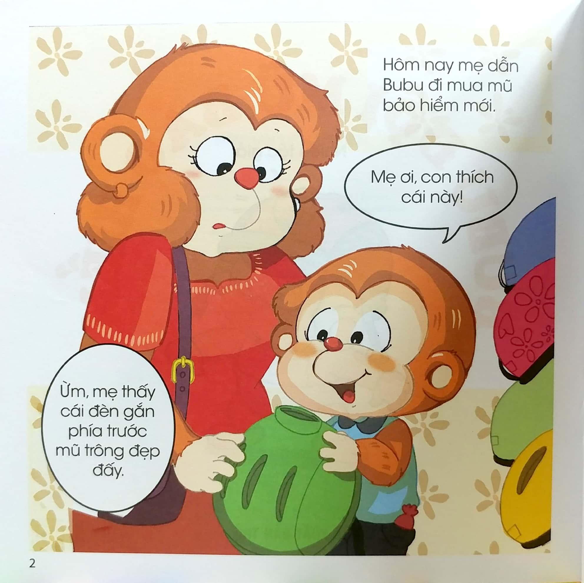 Qua truyện BuBu đội nón bảo hiểm giúp các bé hiểu được để an toàn khi tham gia giao thông các bé phải đội nón bảo hiểm vừa với đầu của mình.
