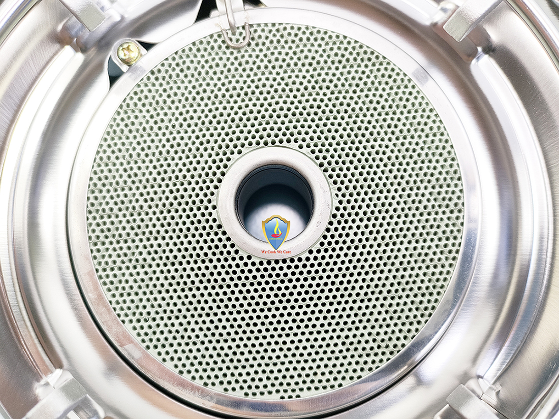 Bếp có kiềng đỡ bằng inox rất chắc chắn, có các khía trên 4 chân đỡ. Do đó kiềng đảm bảo bám chặt các vật dụng nấu nướng, tránh các trường hợp trơn trượt, rung lắc. Ngoài ra, kiềng bếp còn được trang bị vòng chắn gió được xếp mí rất an toàn, giúp ngọn lửa không bị ảnh hưởng do gió, hay quạt điện các loại (có thể sử dụng bếp ngay cả ngoài trời có gió mạnh).