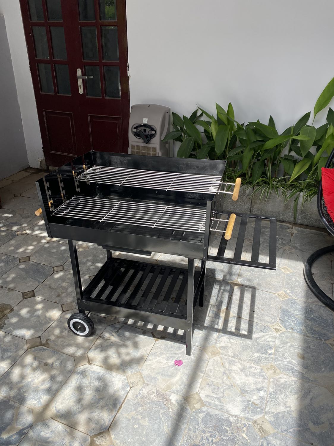 Bếp nhìn khá đẹp, nhưng kết cấu lỏng lẻo, 2 lỗ bắt vít bị sai phải khoan lại, bánh xe dở nên bị kẹt không đẩy được. Vỉ nướng inox chắc chắn, nhưng hàn ẩu, chưa dùng đã bung mối hàn, phải mang ra tiệm hàn lại hết 50k