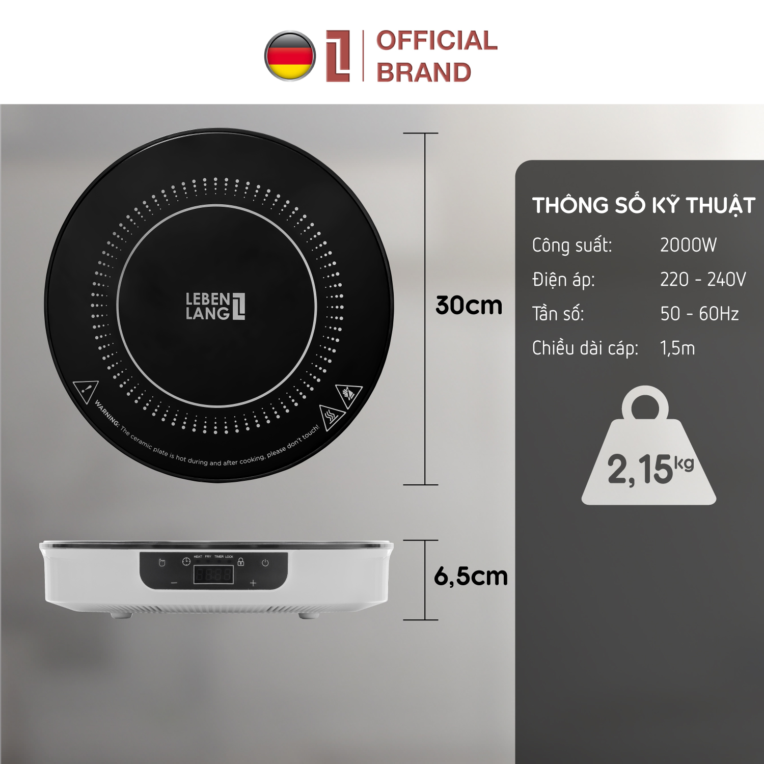 Thông số kỹ thuật Bếp từ đơn LEBENLANG LBII5505S mặt kính chịu lực, có chức năng hẹn giờ, cài đặt thời gian nấu, công suất 2000W - hàng chính hãng