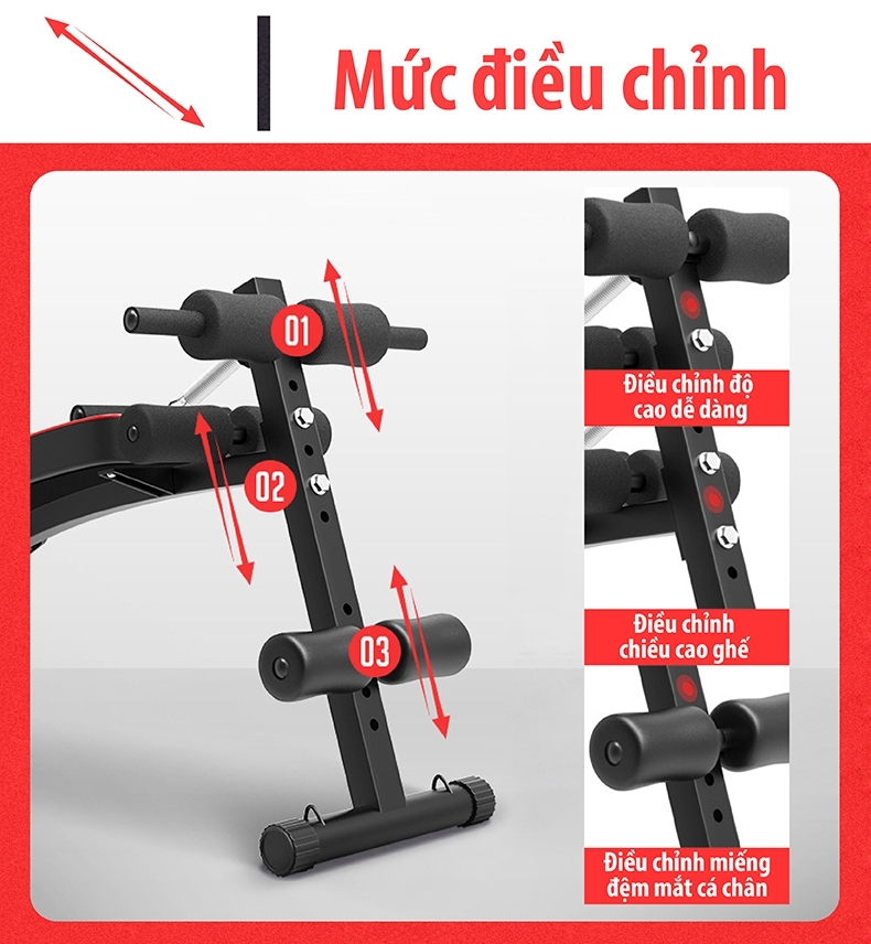 - Khung thép vững chãi với tải trọng lên tới 100kg sẽ nâng đỡ cơ thể bạn tối đa, đảm bảo sự an toàn tối đa cho người tập