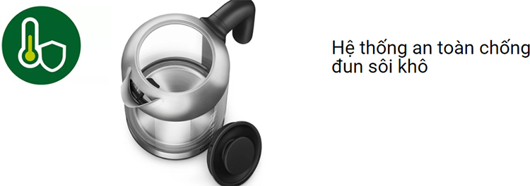 Hệ thống an toàn đa chiều chống hiện tượng đun sôi khô, với công tắc tự động tắt khi nước đã sôi.