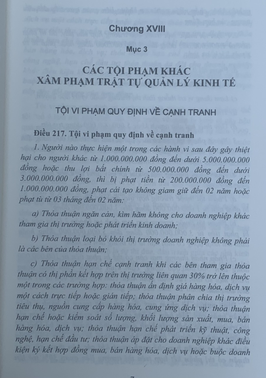 Thông số kỹ thuật Bình luận Bộ luật Hình sự năm 2015 (Phần hai-Các tội phạm), Chương XVIII, Mục 3: xâm pham trật tự quản lý kinh tế