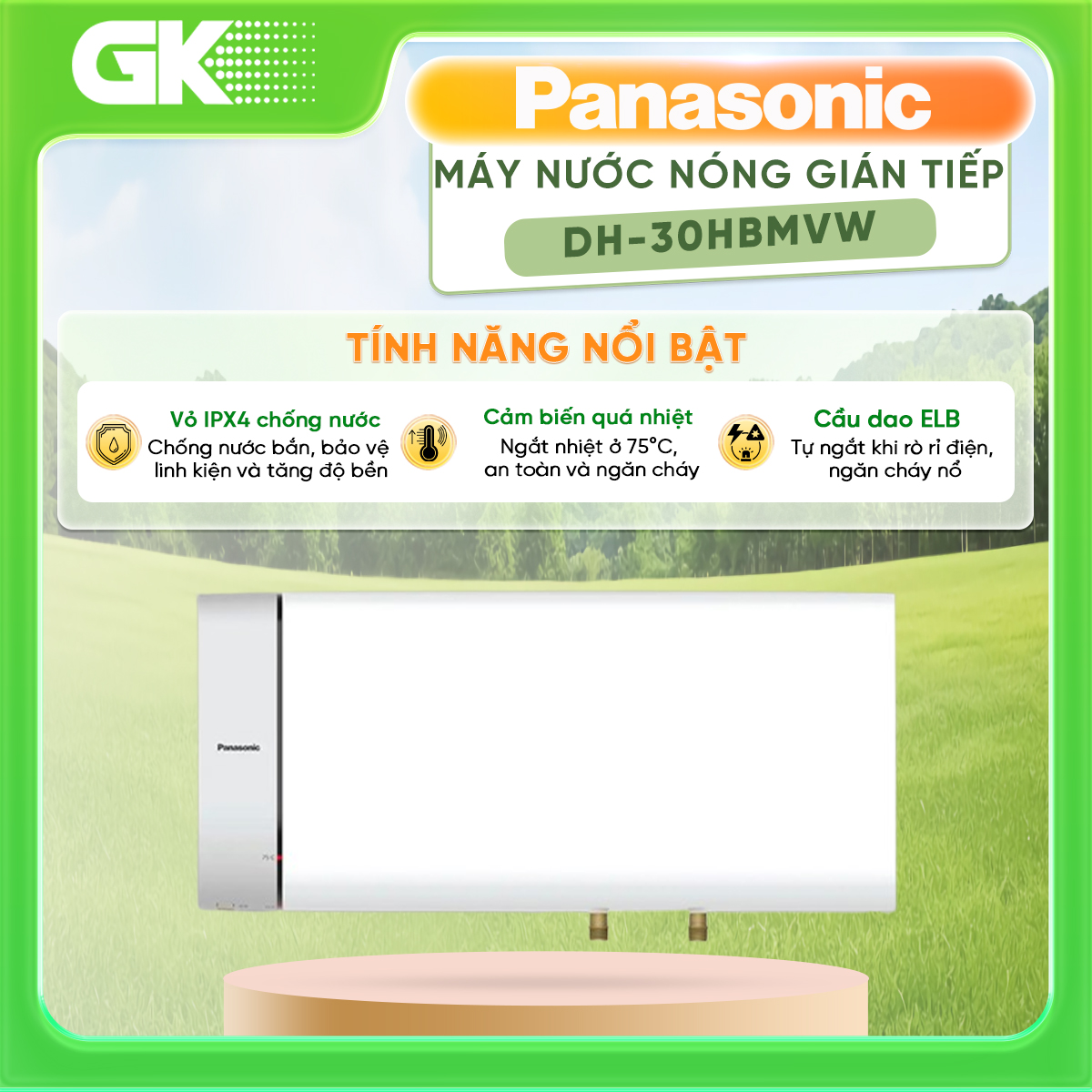 Thông số kỹ thuật Bình nóng lạnh Panasonic DH-30HBMVW 30L, hàng chính hãng