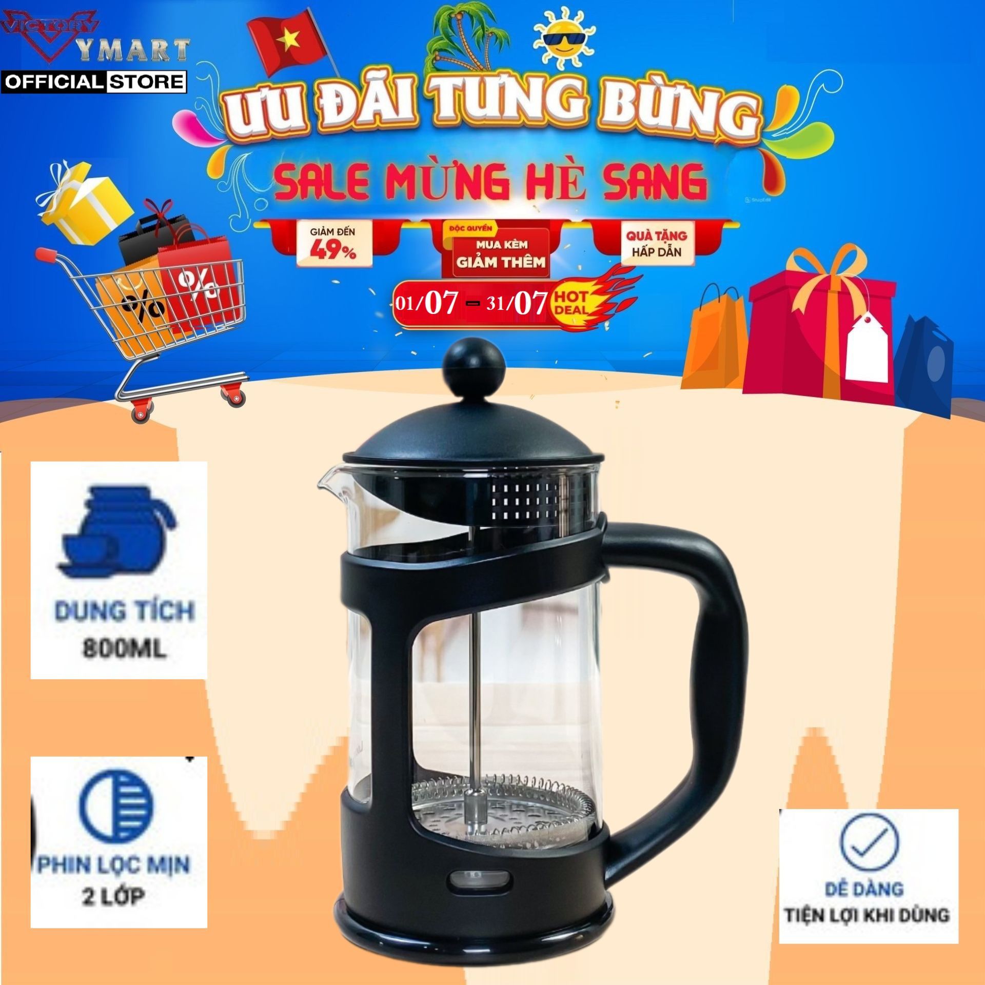 ️ Dung tích 800ml - Thân thủy tinh chịu nhiệt Brosilicate, bộ lọc inox 304, nắp, vỏ ngoài tay cầm nhựa PP
