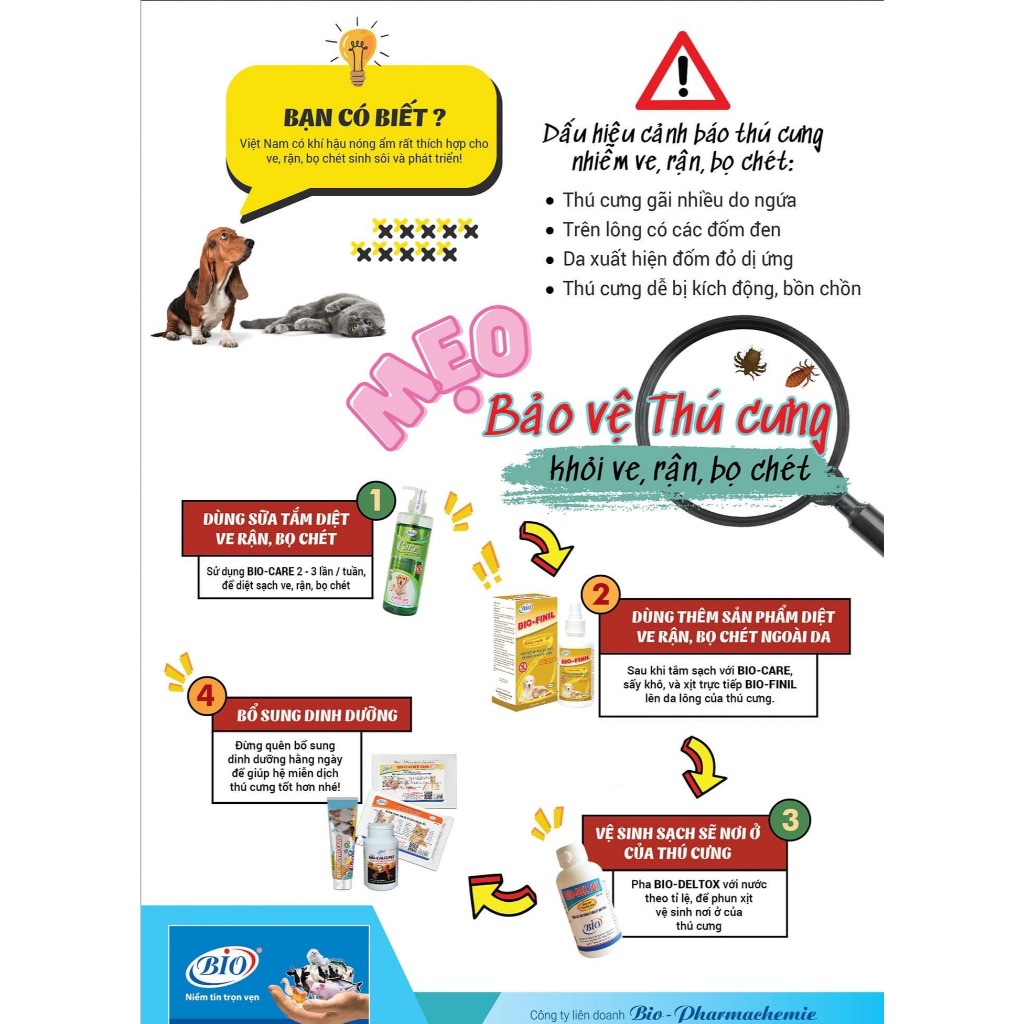 * Bio Finil diệt sạch ve rận, bọ chét, ghẻ Sarcoptes trên cơ thể chó, mèo.