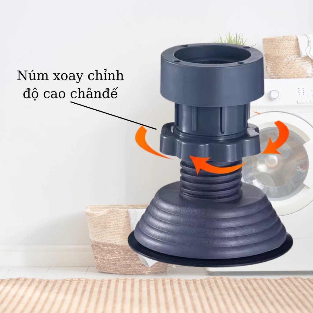 - Công dụng: sản phẩm được làm từ vật liệu cao su tổng hợp đặc biệt chống rung lắc, giúp giảm thiểu tiếng ồn hiệu quả cho máy sấy, máy giặt khi động cơ hoạt động. Vừa là chân năng đỡ các sản phẩm gia dụng hiệu quả, giúp công đoạn vệ sinh điểm khuất trở lên dễ dàng và thuận tiện. Giảm thiểu hiệu quả tiếng ồn tác đụng trực tiếp đến sàn nhà do được làm từ vật liệu cao su có tính đàn hồ
