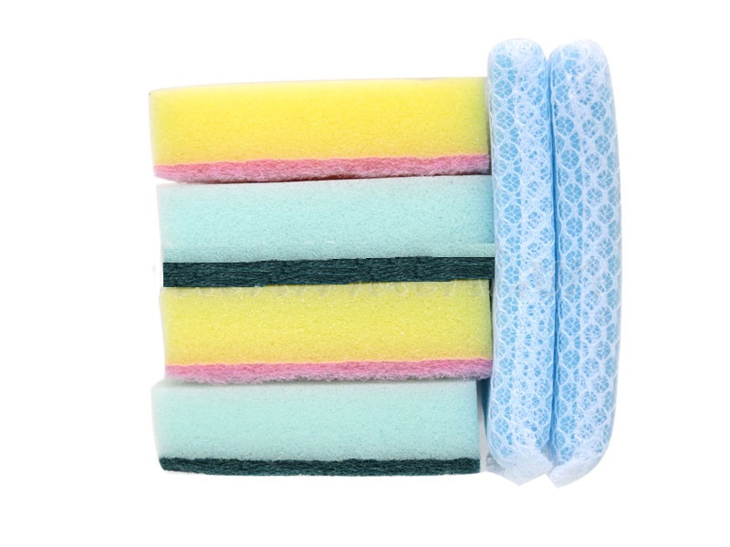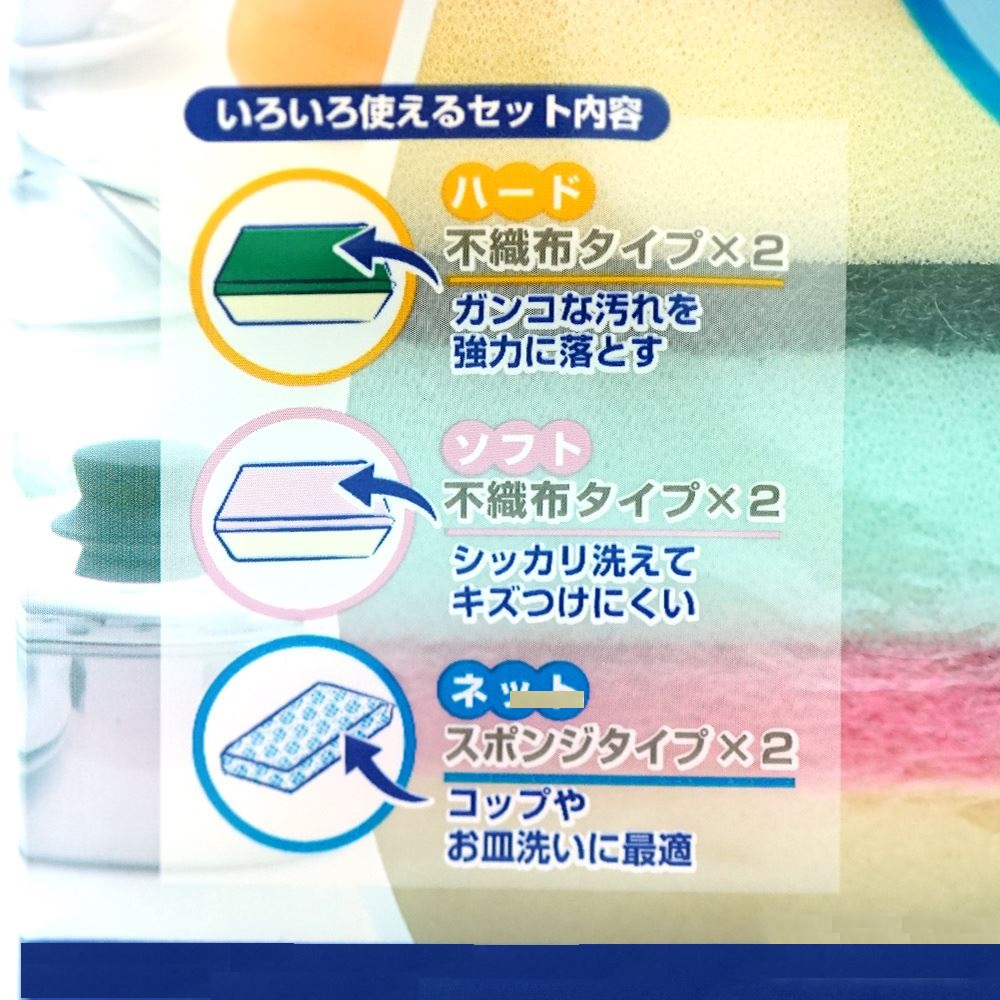 * Công dụng: Bộ mút rửa chén gồm 3 loại: Loại mút cứng (màu xanh lá - 2 cái) thích hợp dùng chùi rửa các vết bẩn cứng đầu. Loại mút mềm (màu hồng - 2 cái) thích hợp chùi rửa chén bát. Loại mút bọc lưới mềm (xanh da trời - 2 cái), thích hợp dùng chùi rửa ly tách gốm sứ, thủy tinh. Mút thích hợp cho nhiều mục đích sử dụng, tiện dụng cho mọi nhà bếp.