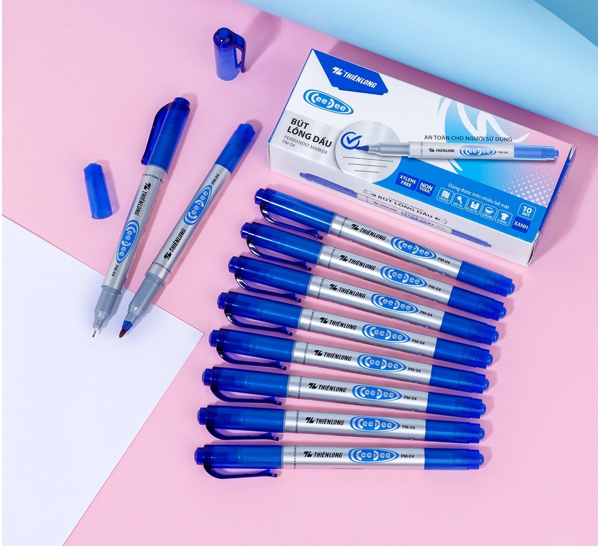 Bút lông dầu Thiên Long PM-04 là một trong những loại bút lông dầu được sử dụng phổ biến nhất tại Việt Nam. Bút có thiết kế rất hợp lý, dễ sử dụng, chất lượng ổn định. Bút lông dầu Thiên Long PM-04 là sản phẩm mới thuộc nhóm dụng cụ văn phòng, do Tập đoàn Thiên LOng sản xuất. Sản phẩm được sản xuất theo công nghệ hiện đại, đạt tiêu chuẩn chất lượng quốc tế, kiểu dáng được cải tiến ấn tượng , thân bút cầm chắc tay , dễ cầm nắm , không gây mỏi tay khi sử dụng .