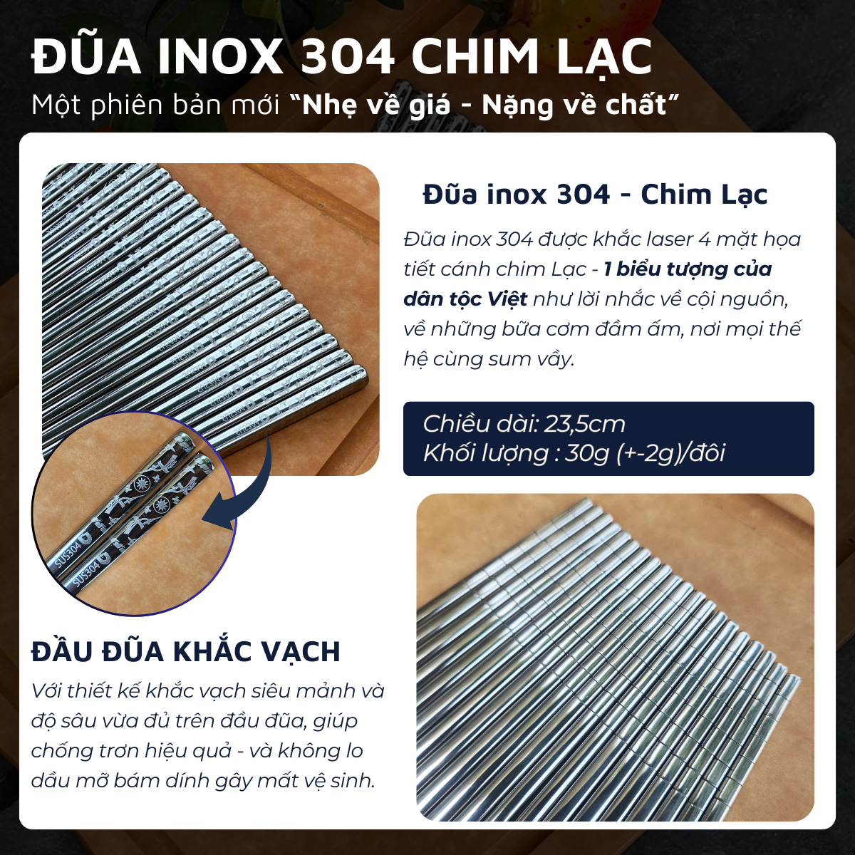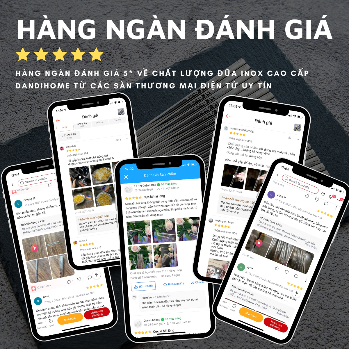 Thông số kỹ thuật Bộ 10 đôi đũa inox 304 - 316 DandiHome 2020 chống trơn trượt, sang trọng, tinh tế