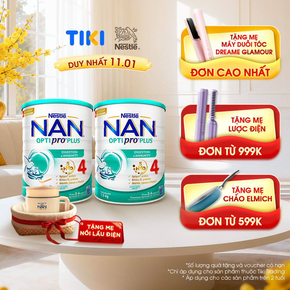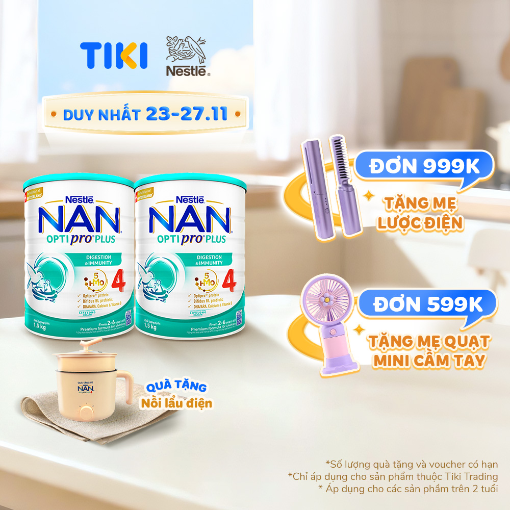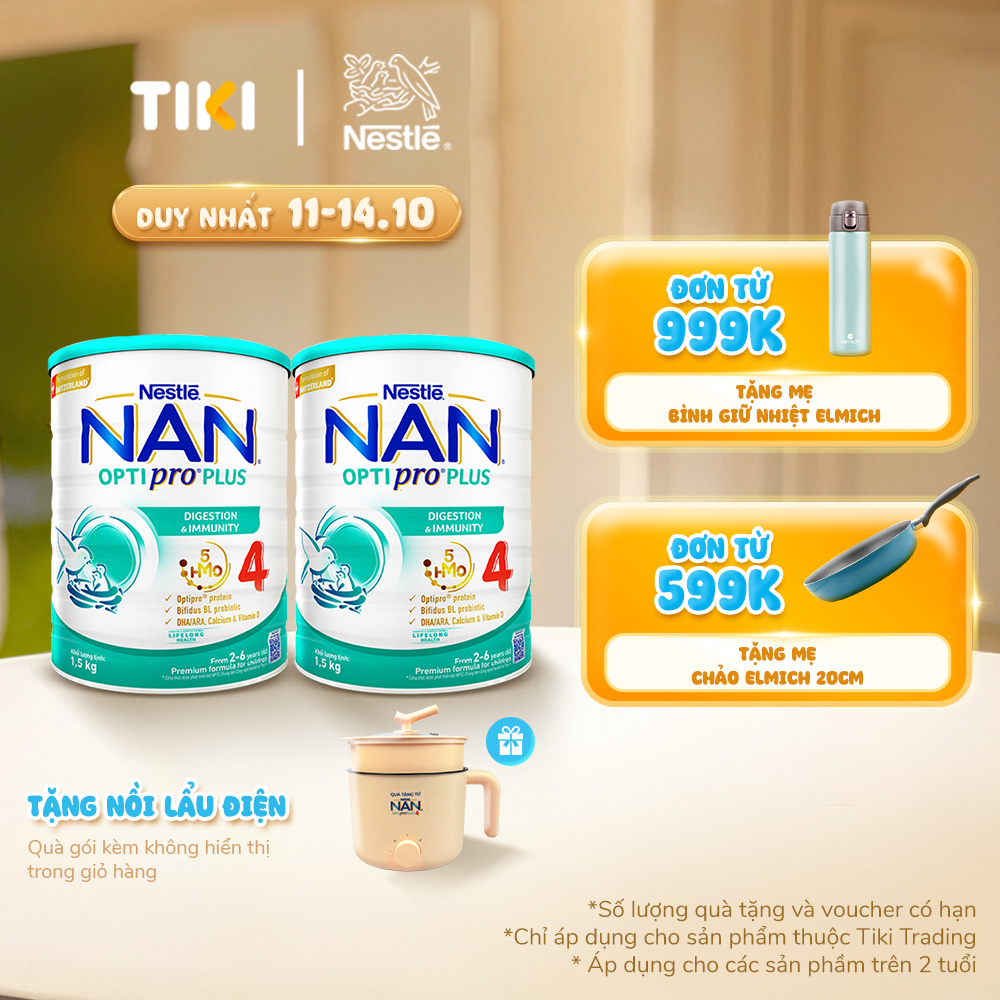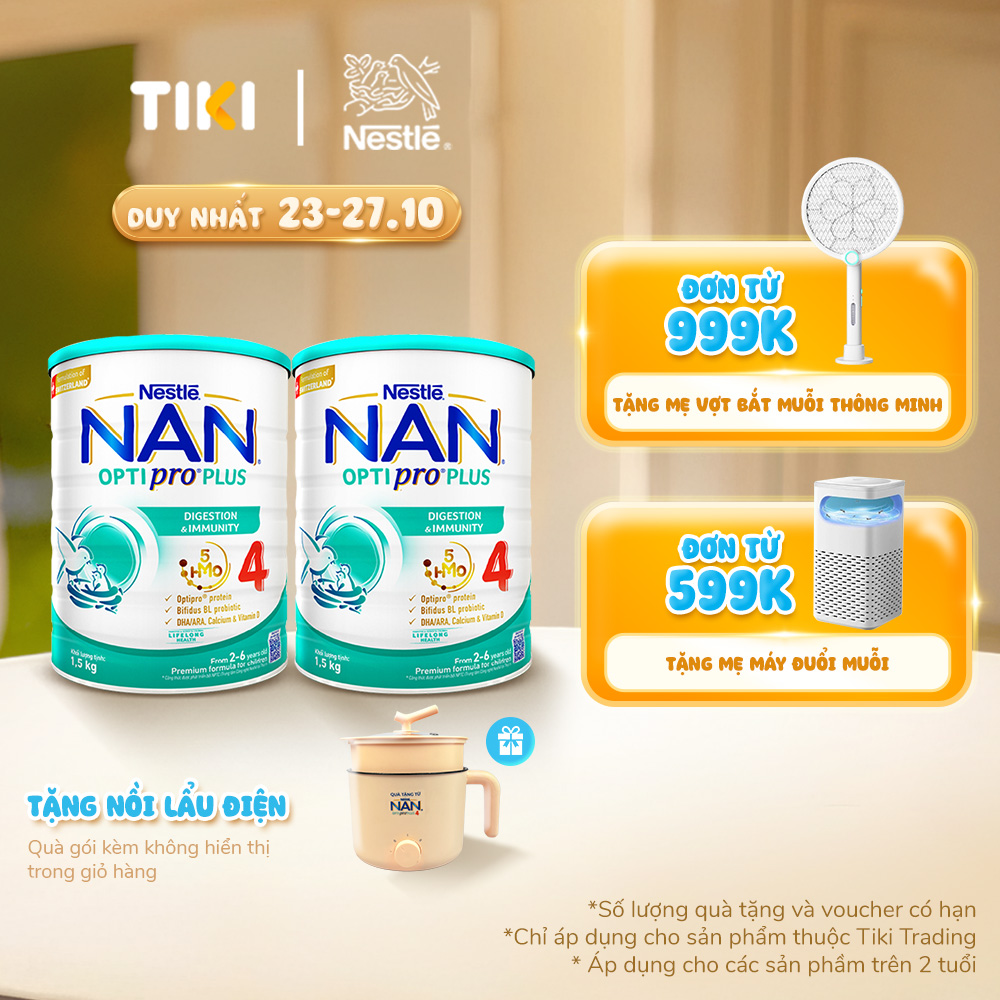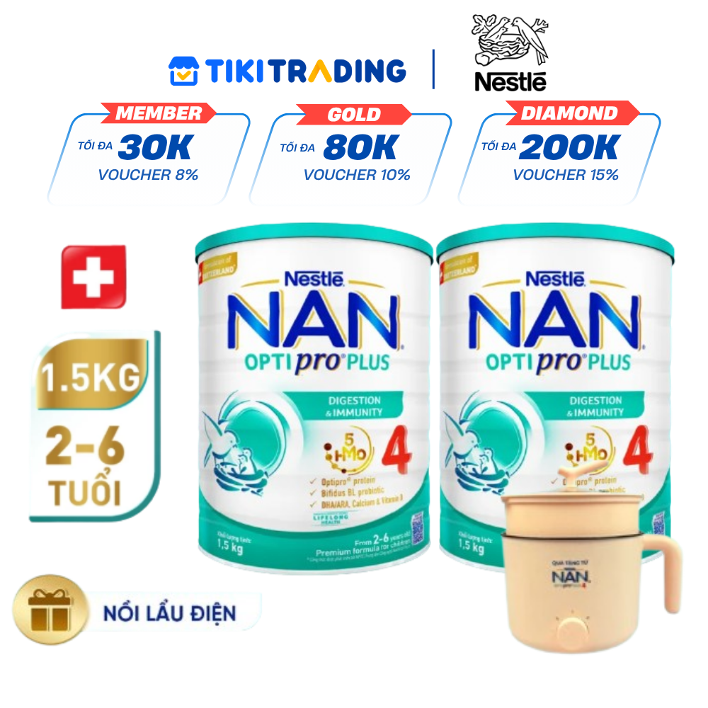 Thông số kỹ thuật Bộ 2 lon Sữa bột NAN OPTIPRO PLUS 4 Nestle Bé 2-6 tuổi 1500g/lon Giúp tiêu hóa tốt