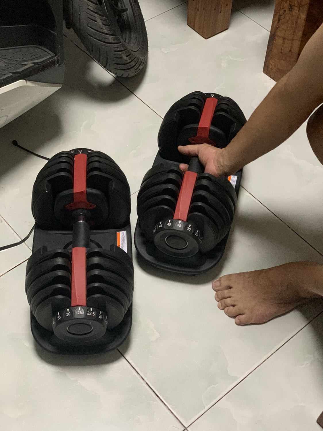 Thông số kỹ thuật Bộ 2 Tạ Tay Điều Chỉnh Khóa Số Tự Động 24kg Cao Cấp ( Tặng Kèm Đôi Găng Tay Màu xanh ) Ảnh thật kèm khay đựng tạ 48kg/ 2 tạ