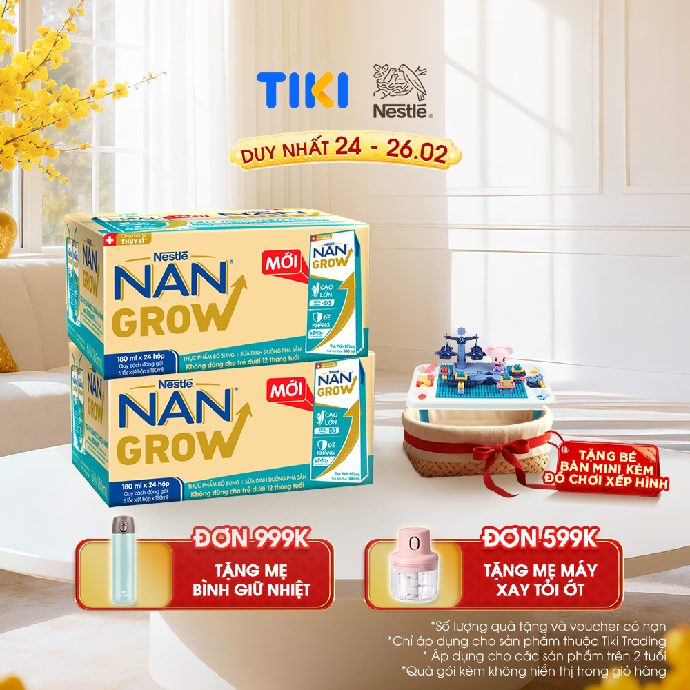 Thông số kỹ thuật Bộ 2 Thùng 24 hộp Sữa pha sẵn Nestlé NANGROW sữa mát công thức từ Thụy Sĩ 6(4 x 180ml) - (Bé từ 1 tuổi)