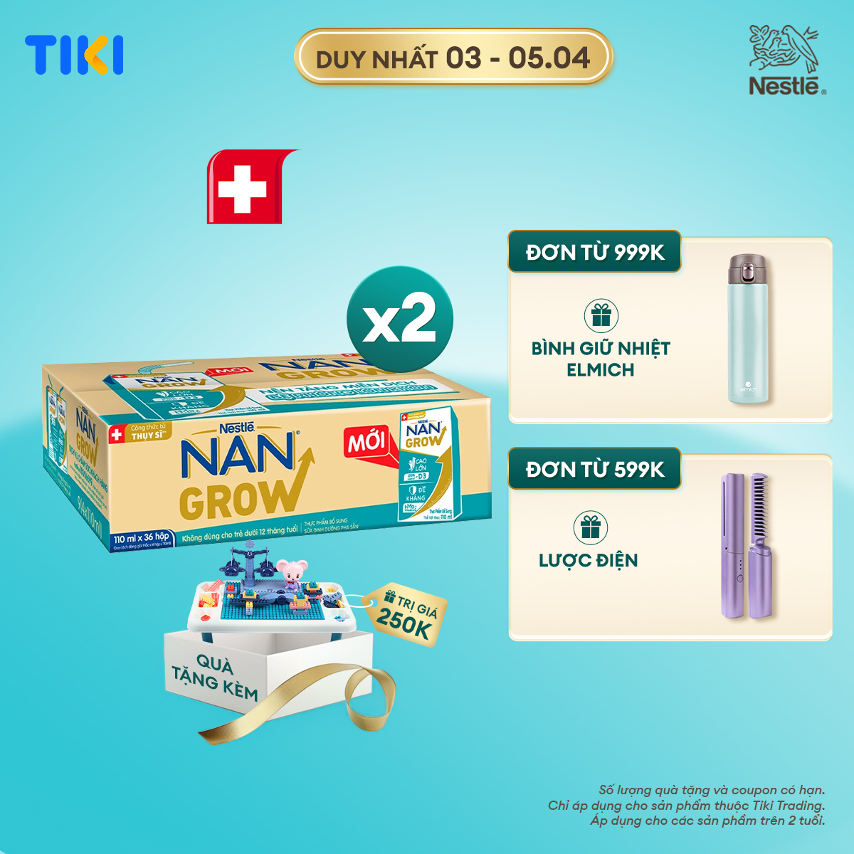 Thông số kỹ thuật Bộ 2 Thùng 36 hộp Sữa pha sẵn Nestlé NANGROW sữa mát công thức từ Thụy Sĩ 9(4 x 110ml) - (Bé từ 1 tuổi)