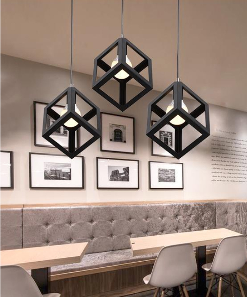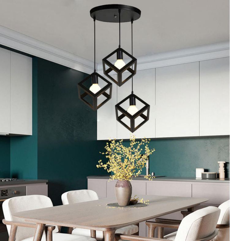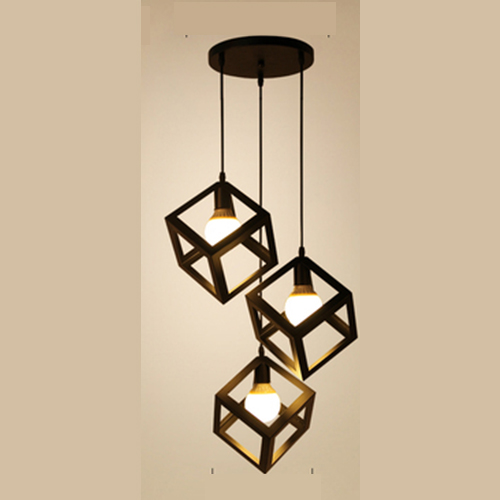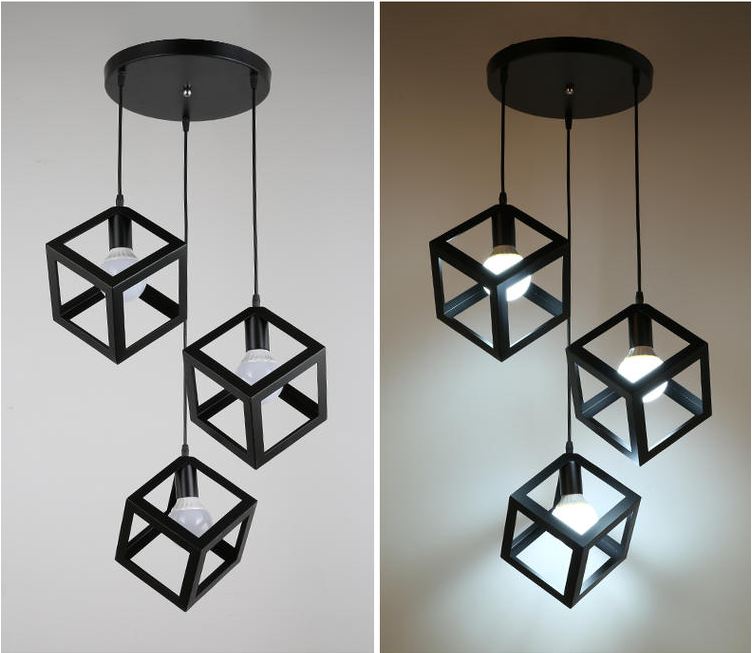 Bộ 3 đèn thả khối lập phương trang trí cao cấp kèm bóng LED và đế ốp trần