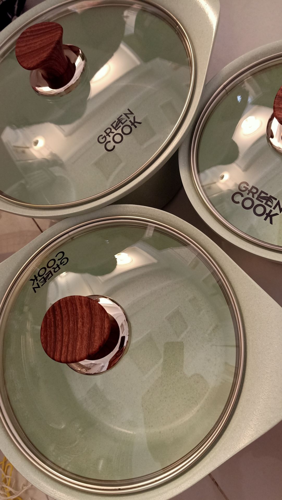 | Tên sản phẩm | Bộ 3 Nồi quánh đúc nguyên khối Ceramic chống dính men đá xanh ngọc có nắp kính Green-Cook GCS05-size 18cm/20cm/24cm công nghệ Hàn Quốc |