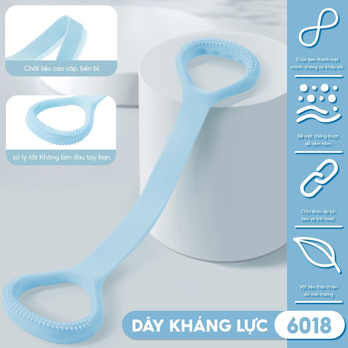 Chất liệu cao su đàn hồi cao, bảo vệ môi trường, tiêu chuẩn châu Âu, có thể được kéo dài hơn 6 lần nhanh hồi phục, không biến dạng, không độc hại.