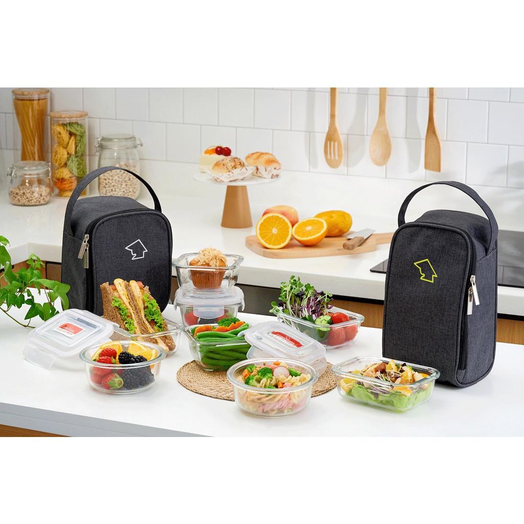 Bộ hộp đựng cơm thủy tinh giữ nhiệt có đử kích thước từ nhỏ nhất hình vuông 320 ml cho tới lớn nhất hình tròn 1041 ml