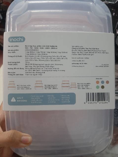 Thông số kỹ thuật Bộ 6 hộp đựng thực phẩm chữ nhật Inochi Hokkaido (500-750-1000-1500-2000-2500ml)