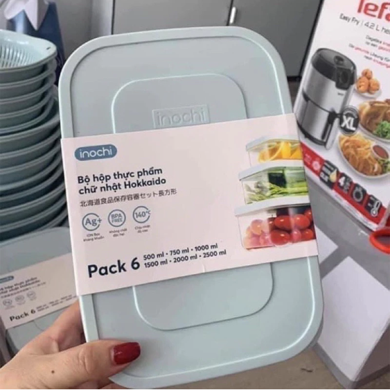 Thông số kỹ thuật Bộ 6 hộp thực phẩm chữ nhật Hokkaido 500-750-1000-1500-2000-2500ml