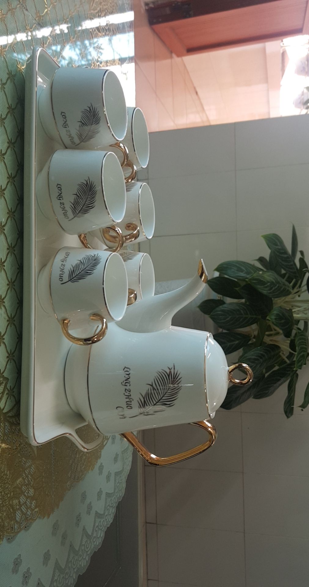 Bộ ấm chén kèm khay sứ pha trà cà phê siêu sang cho ngày Tết- Bộ cốc chén pha trà cà phê kèm khay bằng sứ