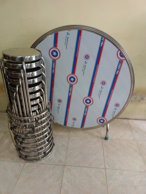 BỘ BÀN INOX ; - 1 BÀN TRÒN INOX KÍCH THƯỚC 1M2 .