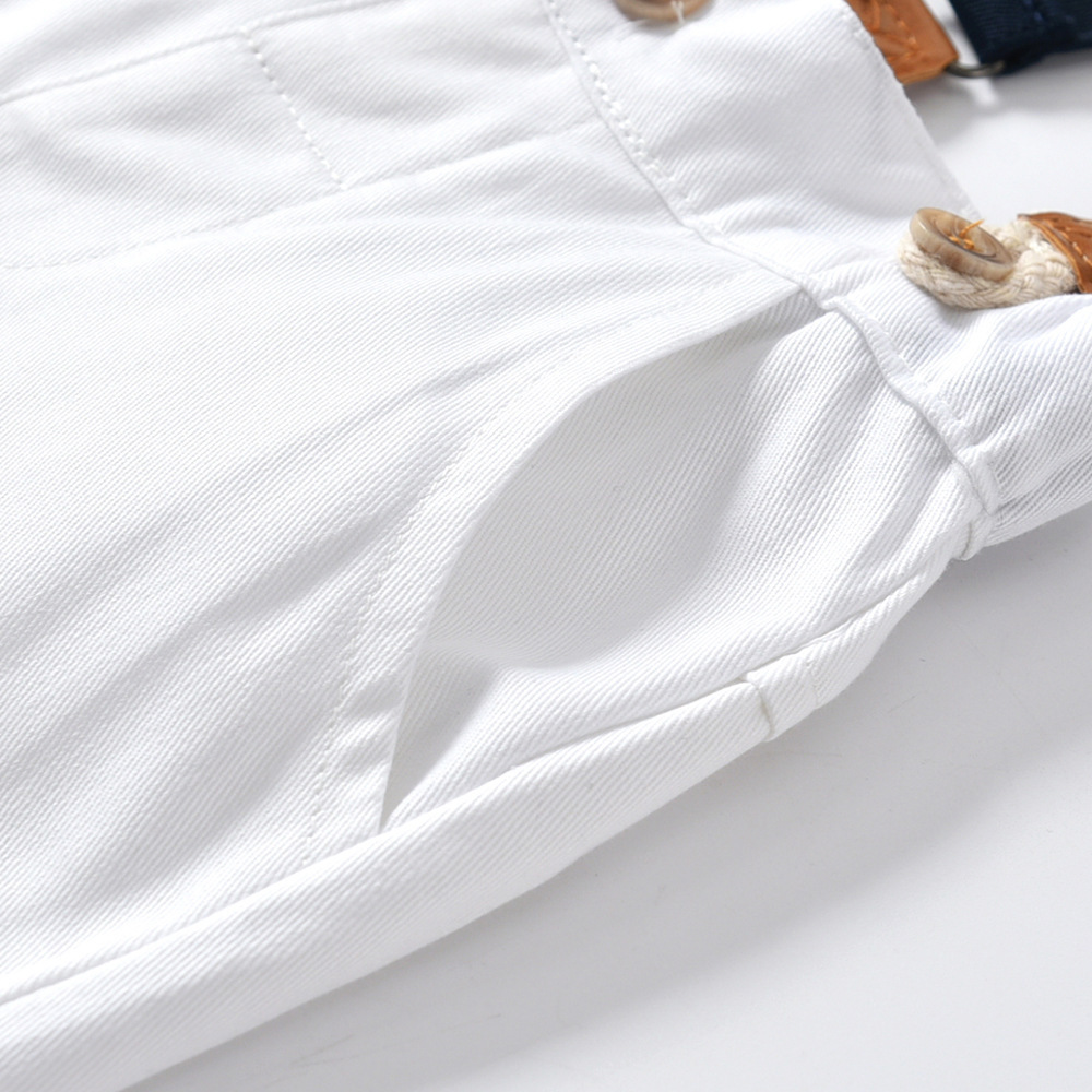 - Bộ bé trai phong cách với áo sơ mi dài tay cùng quần dây đeo nam tính.