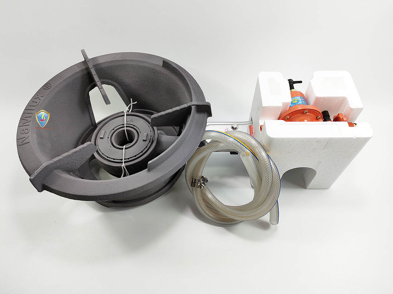 Đầu đốt bếp của bếp bằng gang được thiết kế lớn, chắc chắn. Với ngọn lửa lớn và mạnh mẽ, bếp khè công nghiệp Namilux sẽ giúp bạn nấu nướng nhanh chóng và tiết kiệm được nhiều thời gian hơn. Sử dụng bếp gas công nghiệp là giải pháp tiết kiệm chi phí, tiện lợi, an toàn.