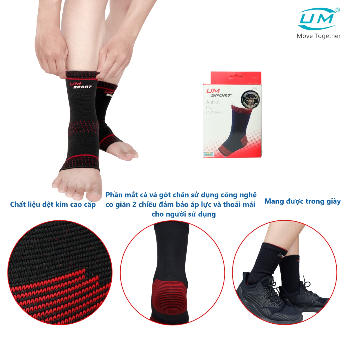 Thông số kỹ thuật Bó cổ chân thể thao PRO Red United Medicare (Cặp) (D13)