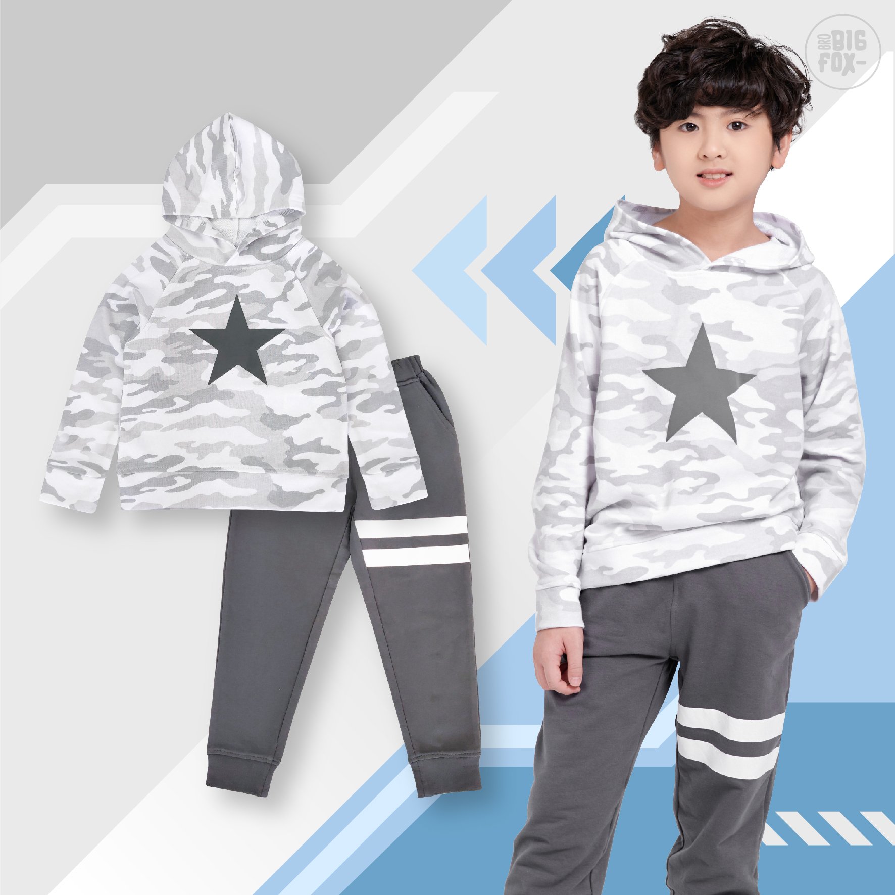 TÊN SẢN PHẨM: Bộ dài tay bé trai BIGFOX - MISS MEOW size đại, bộ thu đông cho bé phong cách Âu Mỹ rằn ri in NGÔI SAO 11 - 38 kg