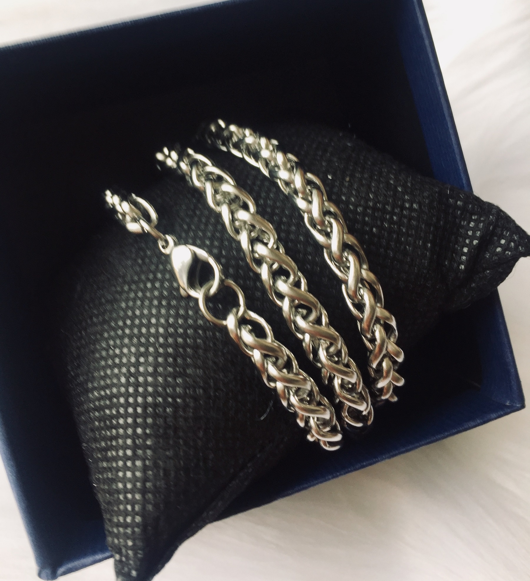 Bộ Dây Chuyền Nam Nữ inox kiểu Xích Lặc, Kèm hộp đựng lót nỉ.