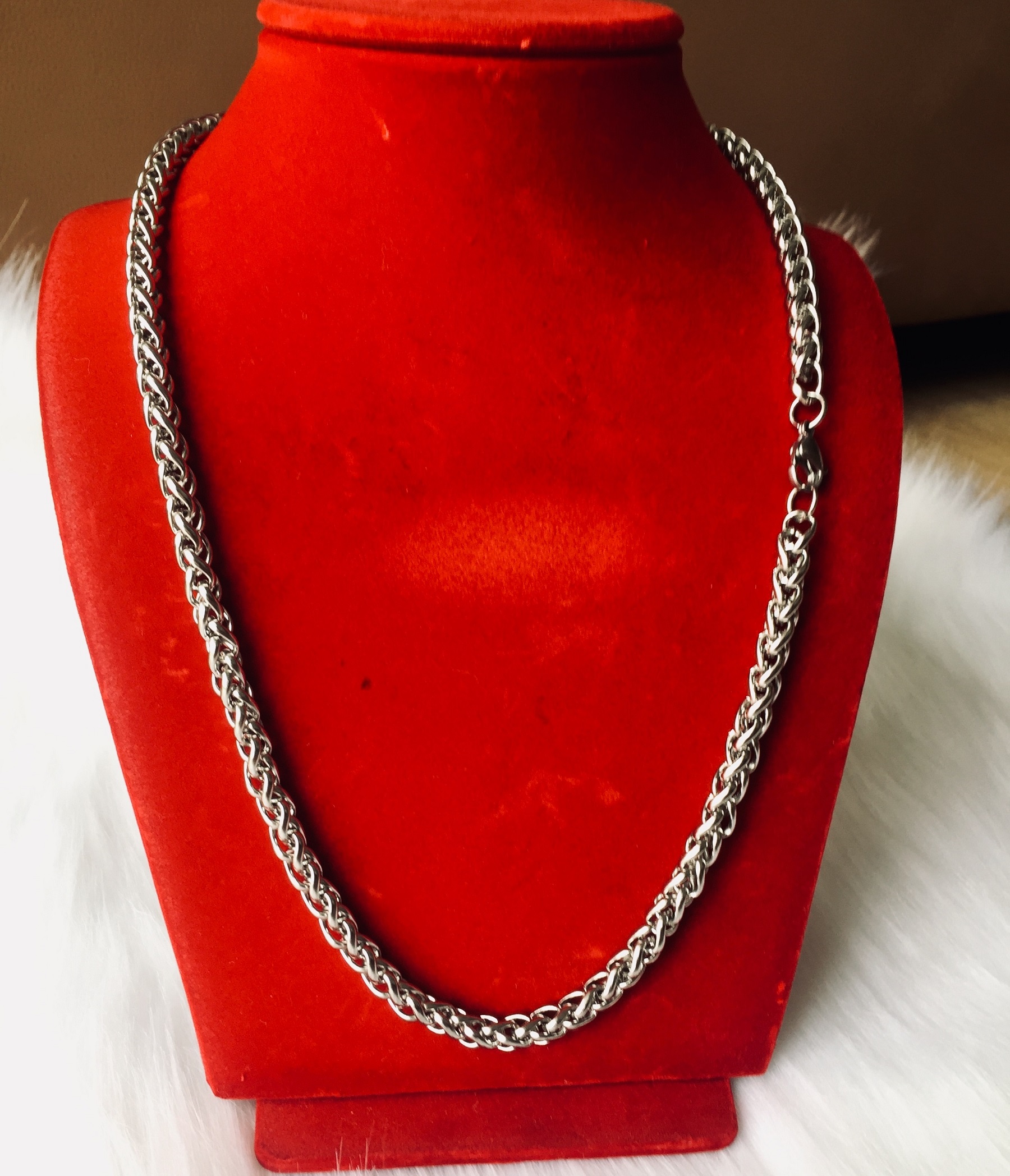 Thông số kỹ thuật Bộ Dây Chuyền Nam Nữ inox kiểu Xích Lặc, Phong cách Châu Mỹ, Kèm hộp đựng lót nỉ.